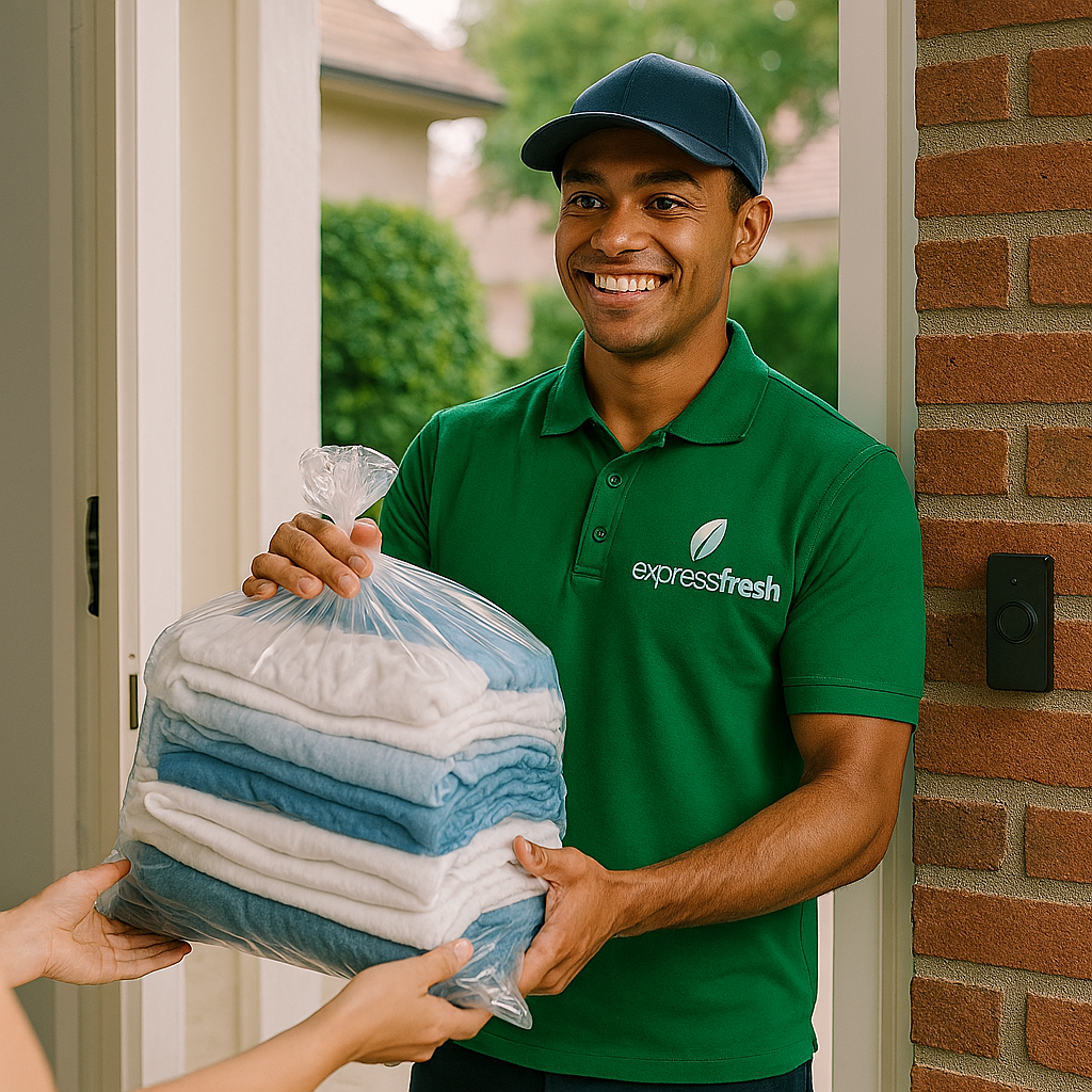 Forget the travel, the waiting, and the hassle. ExpressFresh offers convenient doorstep pickup and delivery, bringing professional laundry service right to your home. Just fresh, folded laundry returned to you.